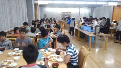 夕食には、川場のリンゴジュースがでました。甘くて香りがよくて、お風呂上がりの、かわいた喉には、ごちそうでした。