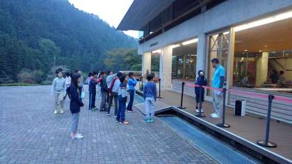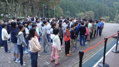 だんだん集まってきて、朝会が始まりました。全体に眠そうです。