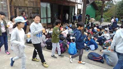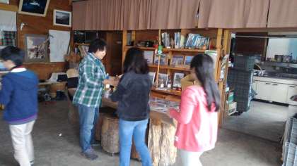 りんごジュースをいただきました。こぼさないように、大事に運びます。