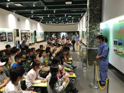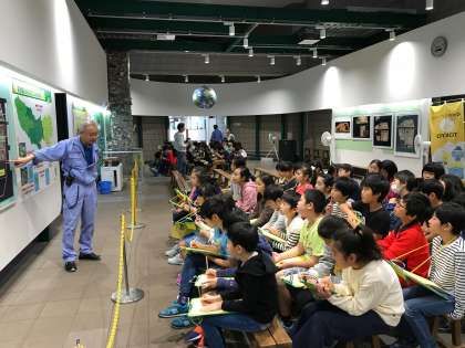 予定より早く到着しました。東京都のゴミが集まってくる廃棄物埋立処分場での学習が始まりました。