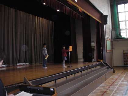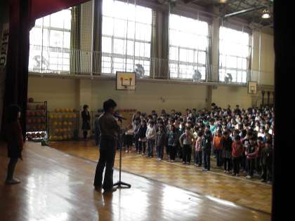 児童代表の話は3年生です。一人は2学期頑張ったことあとの一人は3学期に頑張ることを堂々と発表しました。腰が立ちりっぱな姿勢です。聴いている子どもたちの姿勢も立派です。気持ちのよいスタートとなりました。