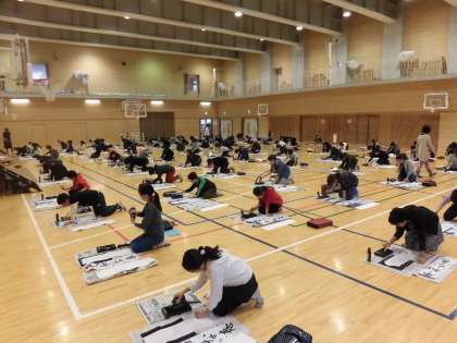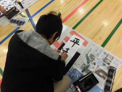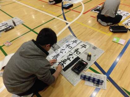 3・4校時に体育館にて書初め大会を行いました。