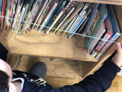 前回は、自宅から持ってきたはがきで大きさ比べをしたり、鉛筆の長さを比べたりしました。今回は、自分たちの教室の中にあるものの大きさ比べを糸を使って学習しました。黒板や机、ロッカー、ドアなどを友達と協力しながら比べました。最終的には教室の周囲を測った長さがチャンピオンになりました。