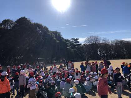 本日、冬晴れの中、用賀小学校との交流会を行いました。