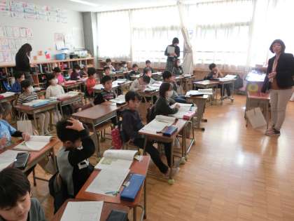 説明文をしっかり読み取れば、素敵な手作りごまが出来上がる。そんな楽しい国語の授業をしています。子どもたちはこまを作るのを楽しみにしながら、必要な材料、手順、作り方を読み取っていました。どんなこまが出来上がるのか楽しみです!
