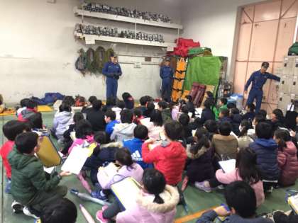 2クラスずつ出かけ、消防署の方にお話をうかがってきました。