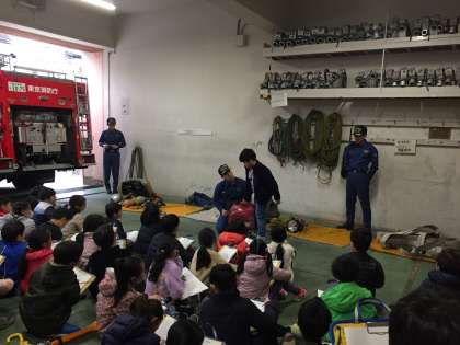 途中緊急要請があり、たった今まで説明してくださっていた消防士さんが、さっと身支度を整え出動していかれた姿に、思わず子どもたちから拍手がわきあがりました。