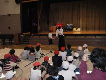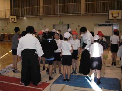 5年生は教科日本語で日本の伝統文化について学習しています。そこで子どもたちにも実際に体験させようと講師の先生を探し頼んでいます。前回は華道、お花でした。今回は合気道です。昨年も来ていただいた先生です。姿勢が大事であると話しておられ、実際にみなで試してみます。体験して気づき、理解していくこともとても大切です。