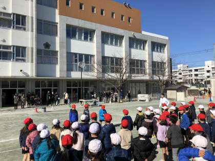 天候が危ぶまれていましたが、冬晴れのもと、1年生は初めての持久走大会に臨みました。