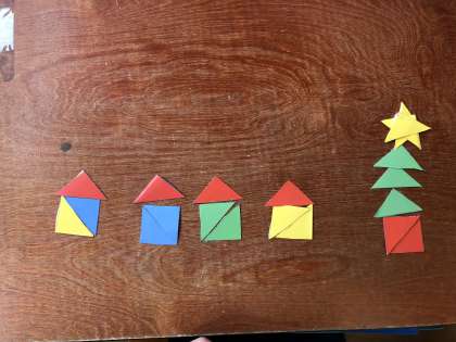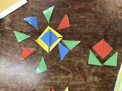 子ども達は、自分が考えた形をいろいたを使って表現しています。