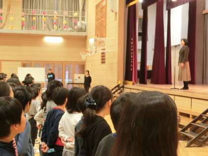 校長先生も子どもの頃よくご両親からお話されたそうです。背筋を伸ばすと血のめぐりが良くなり健康になります。また、精神的に前向きになれます。背筋を伸ばして残り少ない日々を充実させてもらいたいものです。看護当番の先生からも背筋を伸ばして学習のまとめをしましょうという話がありました。