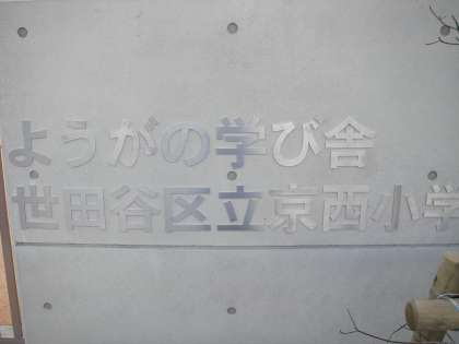 門には「ようがの学び舎 京西小学校」と書かれています。第二校庭に向かう横断歩道も書き換えます。