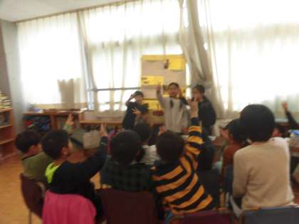 2年生が訪ねてくると、緊張もどこへやら。工夫しながら、楽しそうに伝えていました。お兄さんお姉さんっぷりが、立派でしたよ。