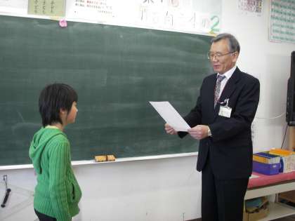 今年は4年生に全国都道府県検定をしています。3学期にも頑張っている子がいます。見事合格しましたので、教室で賞状を渡しました。おめでとうございます。