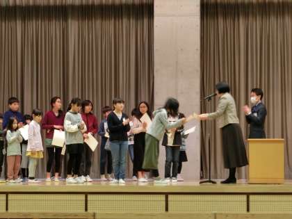 優れた作文や詩、短歌などを書いて『せたがやの子』と『ともしび』に掲載された子どもたちが校長先生から賞状をいただきました。日頃の学習の成果が認められた子どもたちの表情は晴れやかでした。おめでとう!!