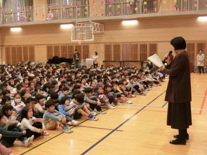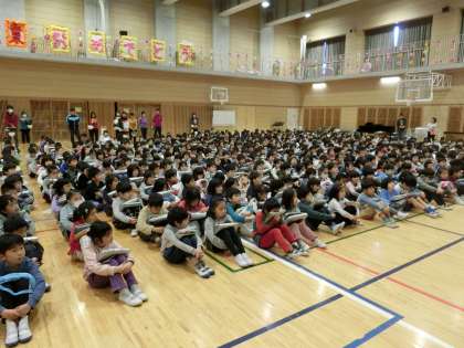 「4年生は8年前の大きな地震を覚えている人はほとんどいませんでした。」