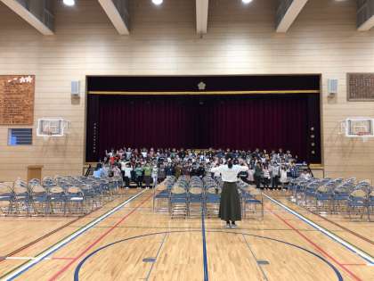 歓迎の呼びかけ、京西さくら組、校歌と、自分たちの入学式で披露されたアトラクションです。