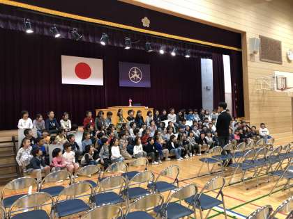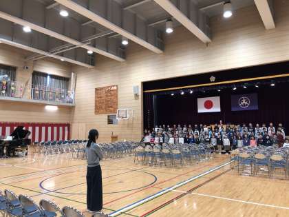 その後、副校長先生の司会で、本番と同じように入場、アトラクション、退場を行いました。