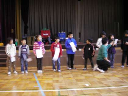 1年生 ○ありがとう ずっとそばから わすれない ○かりこうしゃ いつこわれるか かわいそう ○きゅうこうしゃ おおそうじしたら おわかれだ 2年生○おもいでが いっぱいつまった 体いくかん ○ありがとう つぎのさくらが でてくるぞ ○この学校 思い出いっぱい わすれない 3年生 ○音楽室 いつも歌った 楽しくね ○さようなら 楽しい生活 おくれたよ 4年生 ○4年生 校舎で作った 宝物 ○思い出は 形とちがって なくならない 5年生 ○忘れない 2年間の あたたかさ ○旧校舎 流れた日々は 宝物 6年生 ○5文字では 足りないけれど ありがとう ○旧校舎 心に刻み いざ中学