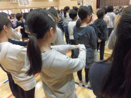 “これから何が始まるんだろう”とドキドキしている1年生の隣で、優しく手をつなぎながら1年生と一緒にドキドキしている6年生。とても微笑ましい光景でした。