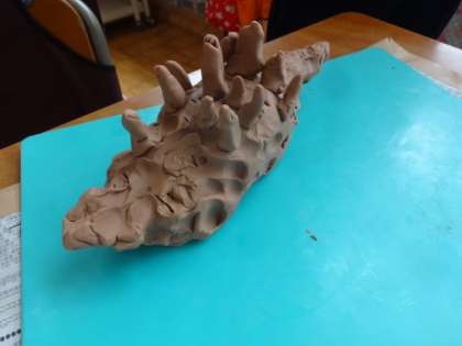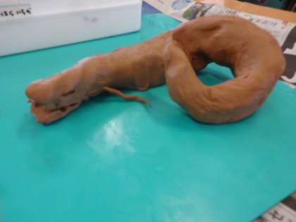 グアナコって、どんな生きものだろう。首は長いのかな、しっぽはあるのかな、と言葉から想像して粘土で表しました。粘土を丸めたり、伸ばしたりしながら、製作することを楽しみました。