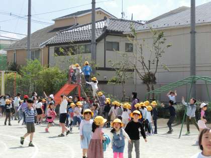 1年生を迎える会を無事に終えて、今日から中休みの外遊びが始まりました。広い校庭を駆けたり、滑り台を滑ったり、ジャングルジムに登ったりと楽しく遊びました。また、上の学年のお兄さんやお姉さんが一緒に遊ぼうと声をかける場面も見られ早速友達の輪を広げていました。