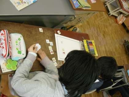外国語活動では、食べ物の名前を英語で言っています。日本語で言うのと英語で言うのでは、アクセントや発音が違うものがあり、なかなか大変です。しかし、やわらか頭でどんどん吸収していきます。