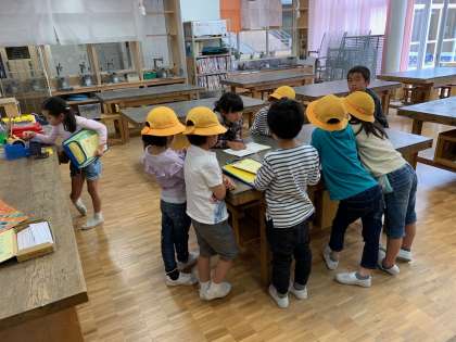 > 今日は学校探検でした。2年生は1 年生のために、どうやって教えようかと考え準備をしてくれていました。わかりやすく説明をしたり、クイズで楽しく教えてくれたりしました。