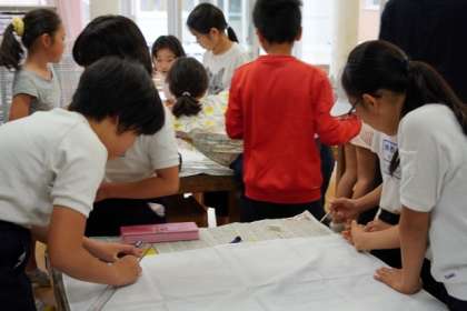 運動会の演技で使う「大漁旗」の制作が始まりました。