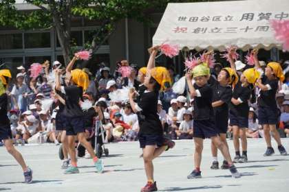 元気いっぱいに動きをそろえて踊った「Let's 京西ちゃーびらさい」