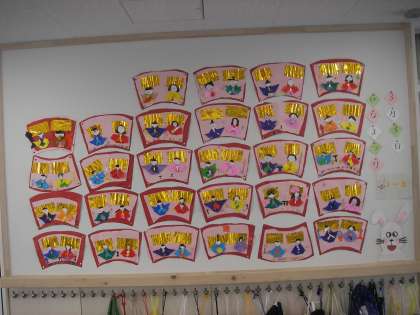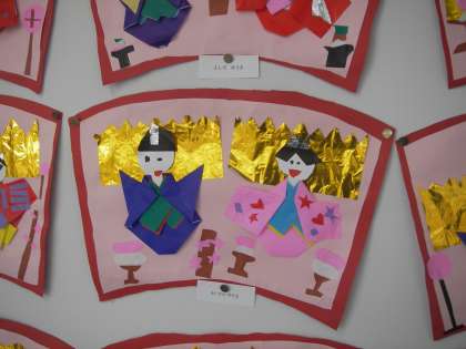 1年生の掲示版に素敵な「おひなさまかざり」がはられていました。あまりに素敵な出来栄えに思わずシャッターを切りました。