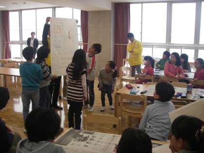 街のあちこちにユニバーサルデザインを考えたデザインが生かされていることが紹介されました。今回は読売新聞の記者が取材にきました。「地域・企業が支える学校教育」というテーマで新年度に向けて取材しているということでした。