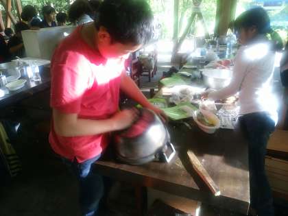 片付け方の説明を聞いて、テキパキと作業にかかっています。