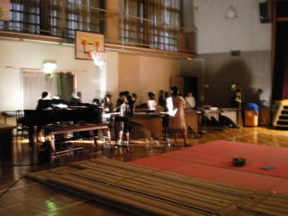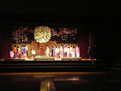 リハーサル前の最後の舞台練習です。一つ一つのセリフ、演技にも力が入ります。舞台と演奏を両方こなす、とてもハードな劇ですが、全員がてきぱきとした行動で頑張っています。