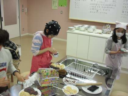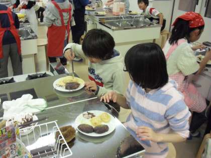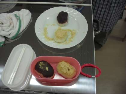 もち米を炊き、ほどよくつぶし、あんやきな粉をつけて作りました。見栄えもよく、自分たちで作ったおはぎはとてもおいしそうでした。