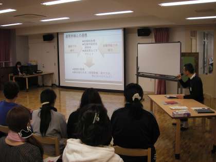 講師は尾山台小学校 わかたけ学級の、今野 仁英先生と竹中 浩先生です。パワーポイントを使い通級学級の存在意義、進め方、配慮すべきことなど具体的に説明してくれました。質問も多くありました。自分の問題として考えているからだと感じました。