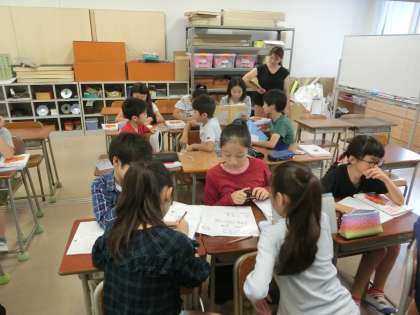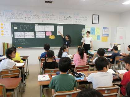 今日は初めて習う「小数÷小数」の計算の解き方をこれまでに習ったやり方を基にして自分の力で考えました。小数を10倍や100倍して整数に直して計算する方法や、数直線を使って1当たり量を求めて計算する方法などの考えが出でました。自分で考えたやり方を友達同士で交流して考えを確かにしたり、広げたりする姿が見られました。