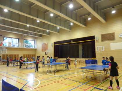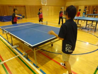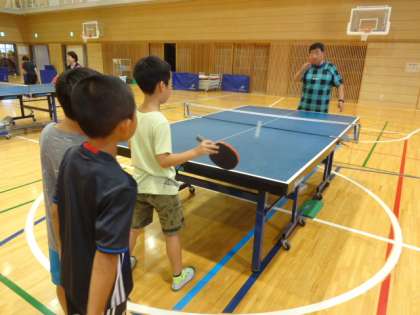 ラケットの持ち方、サーブの打ち方など、コーチからたくさん教えてもらいました。段々と上達し、最後には自分たちで審判も行い、試合ができました。楽しそうに卓球に取り組みました。