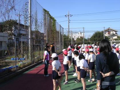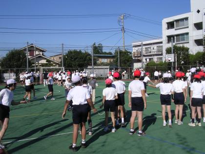 16日の朝は、体育朝会です。秋晴れの爽やかな風の中、長縄に挑戦です。
