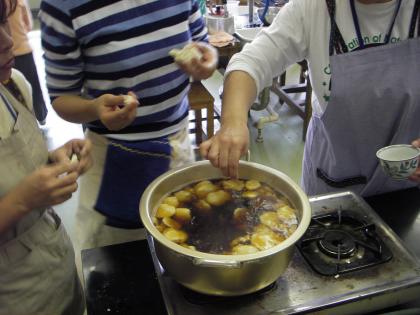 最後の写真は余った小麦粉ですいとんを作っています。