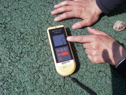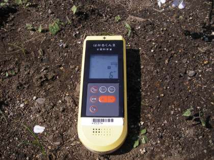 ある小学校が文部科学省から放射線をはかる機器を借りているという情報を得て、京西小学校でもその機器を借りて空気、第二校庭、花壇の土をはかってみました。