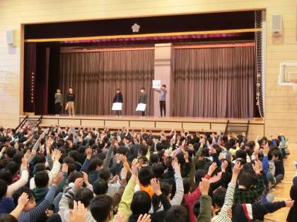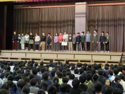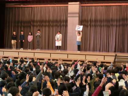 答えは8個獲得した体操の加藤沢男さんです。運動委員会の子どもたちがオリ・パラに関する問題を出してくれました。本校の児童は馬事公苑にパラ馬術を観戦しに行きます。夏に向けて少しずつ気運を高めていきます。