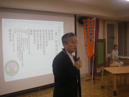 今年も教員は出張者以外は全員参加です。校長は「ようがの学び舎」のピンクのジャンパーを着て、ようがの学び舎をアピールしていました。学校運営委員長の笹尾さんも出席され地域運営学校としての三つのプロジェクトの紹介をしてくれました。また、ようがの学び舎として東日本大地震へ向けての支援について動き出しましょうという話が出ていることを紹介してくれました。