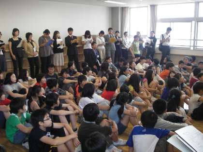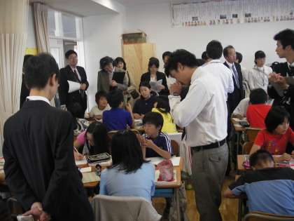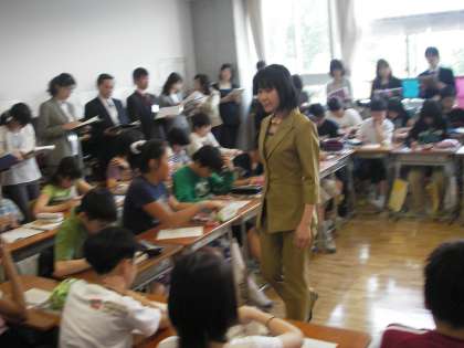 そして、各教室に分かれて具体的により詳しく二つのニュースについて検討していきました。子どもたちはたくさんの参観者がいる中で、よく発表し、よく書き、よく話し合っていました。