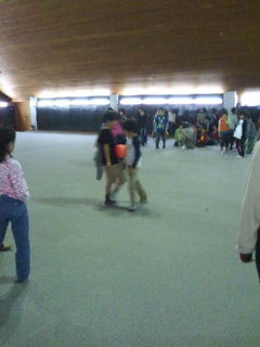夕方から雨となりました。キャンプファイヤーは明日に変更です。宿舎の広場でレクリエーションです。ボール運びゲームや新聞のりゲームなどを楽しんでいます。