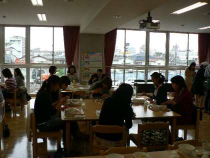 23日にPTA文化厚生委員会主催の「給食試食会」が行われました。栄養士の矢後先生を講師に迎えて、新しい給食室の設備や作業風景、給食の食材などを写真で紹介して頂きました。また、1日に必要な食事量など栄養のバランスについても詳しく説明して頂きました。後半はお待ちかねの試食会です。メニューは、そぼろごはん、やきとり、小松菜と油揚げのおひたし、みそしる、牛乳です。出席者でテーブルを囲み、京西小自慢の給食をおいしく頂きました。