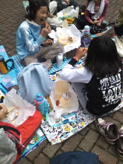林業体験を終えてお昼ご飯です。おにぎりとからあげです。みんな完食です。たりない位です。