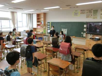明日は、2年生と3年生のBグループの児童が登校します。