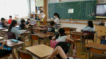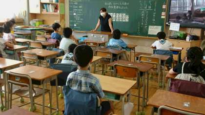 担任の先生やお友達との出会いです。みんな、しっかりと話が聞けています。