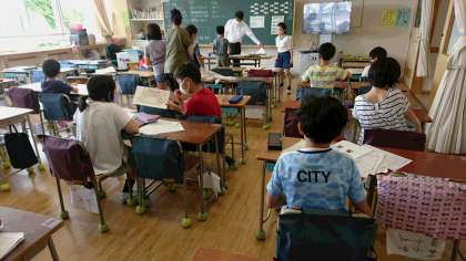 お家でやってきた課題を集めています。しっかりと取り組めている人が多いです!